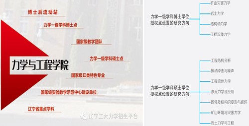 力学与工程学院现拥有一个博士后科研流动站、力学一级学科博士学位授权点和硕士学位授权点以及三个本科专业(理论与应用力学、工程力学、新能源科学与工程)。拥有辽宁省高等学校创新团队,辽宁省重点学科(工程力学),辽宁省重点实验室(矿山环境与灾害力学),辽宁省工程研究中心(矿山动力灾害防控技术与装备)。
