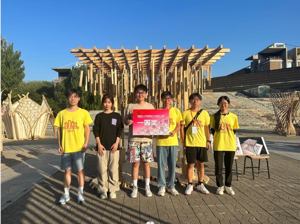 2023年9月13日至15日,辽宁省第四届大学生搭建设计竞赛在沈阳建筑大学举行,本届大赛以“戏木童趣”为主题,为儿童建造一处嬉戏玩耍的空间。学生通过建造实践,获得对材料性能、建造方式及过程的感性和理性认识,理解建筑的物理特性,同时融合对于图面设计技能与实体建构技巧的考察,着重考虑建构各部件衔接处的创新性、精致性以及整体造型结构的安全性、逻辑性。由我校土木工程学院建筑学专业教师杨颖、于晶淼指导,黄元烁、吴宇琛、迟木昕瑶、郭笑楠、尤淇、田震六名同学的作品“笙声”从来自全省17所高校的115个参赛作品中脱颖而出,成功闯入决赛,并荣获一等奖。