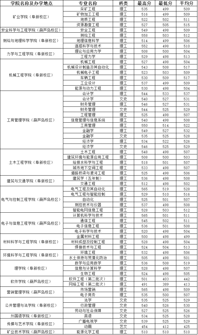 2016年辽宁省各专业录取普通类考生分数情况一览表
