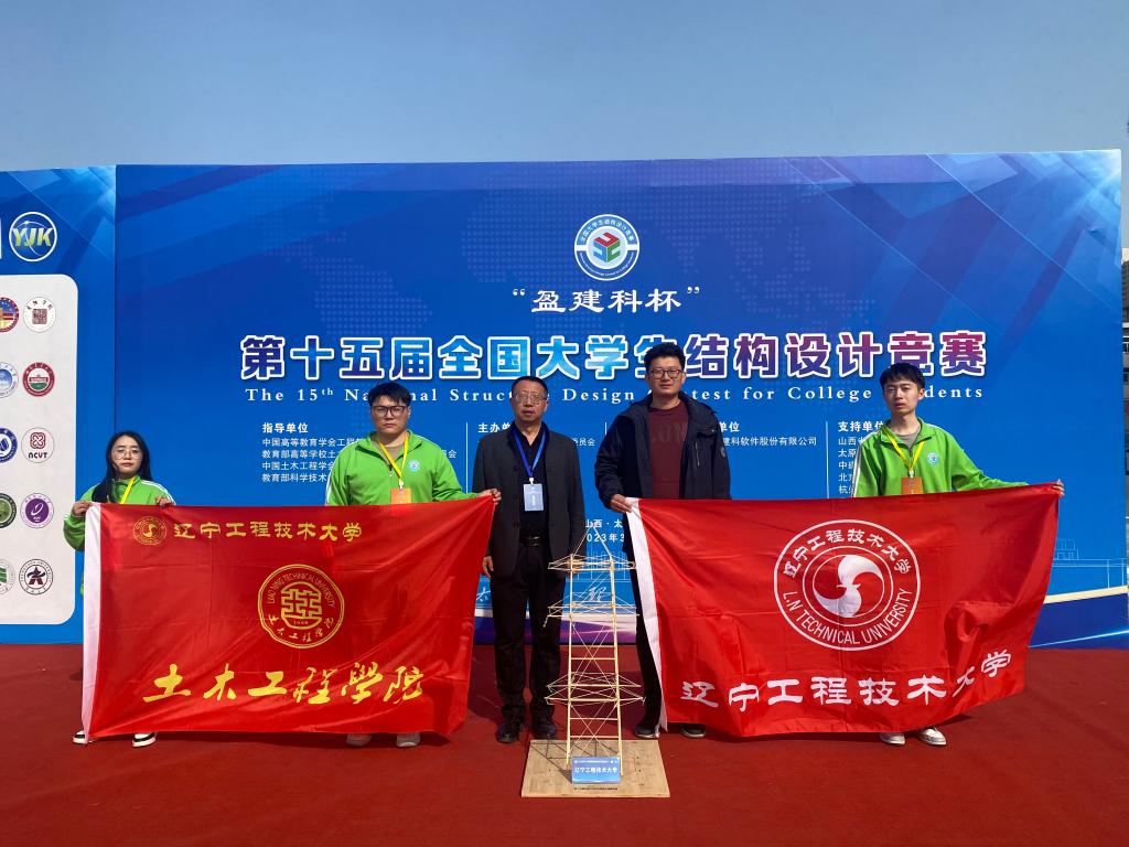 3月26日,为期三天的第十五届全国大学生结构设计竞赛在太原理工大学落下帷幕。我校土木工程学院指导教师吴秀峰和包宇洋,带领汲鹏、吴蓉艳和张值源3名同学代表学校参赛,他们不畏强手、奋勇拼搏,经过16.5小时现场模型制作、陈述答辩、模型加载等环节激烈比拼,脱颖而出,夺得竞赛一等奖,实现了我校在该项赛事的历史性突破,总成绩排名更是取得辽宁省参赛高校最高成绩。