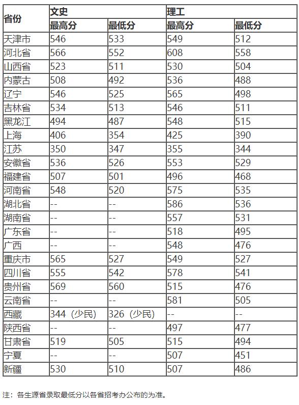 2016年辽宁省各专业录取普通类考生分数情况一览表