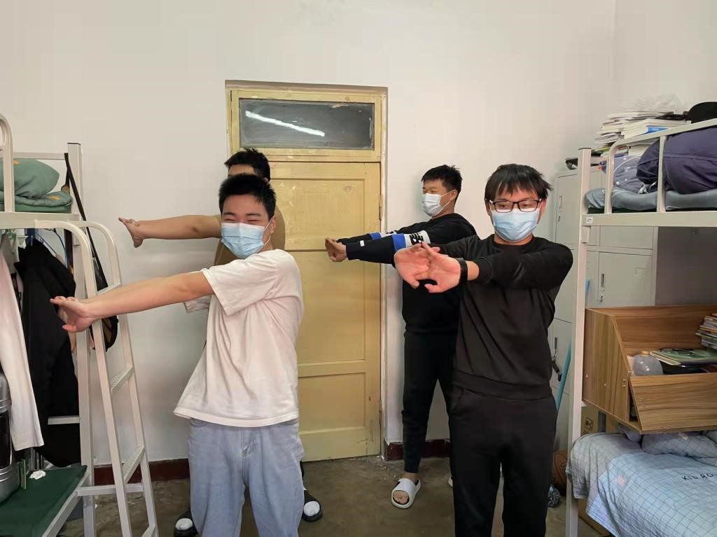 环境人遵循“1+1+1”模式(即早晨起床集体锻炼1次,集体自习1次,集体观看红色影片1次),把寝室打造成“健身房”、“图书馆”、“电影院”、“正能量房”和爱的港湾。