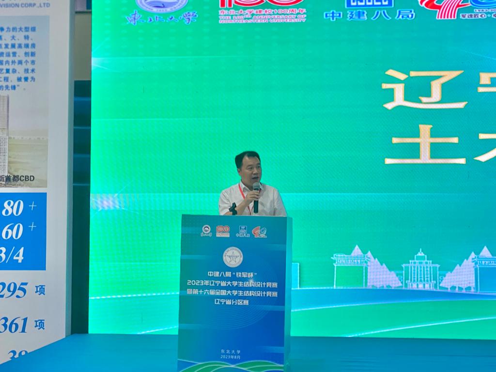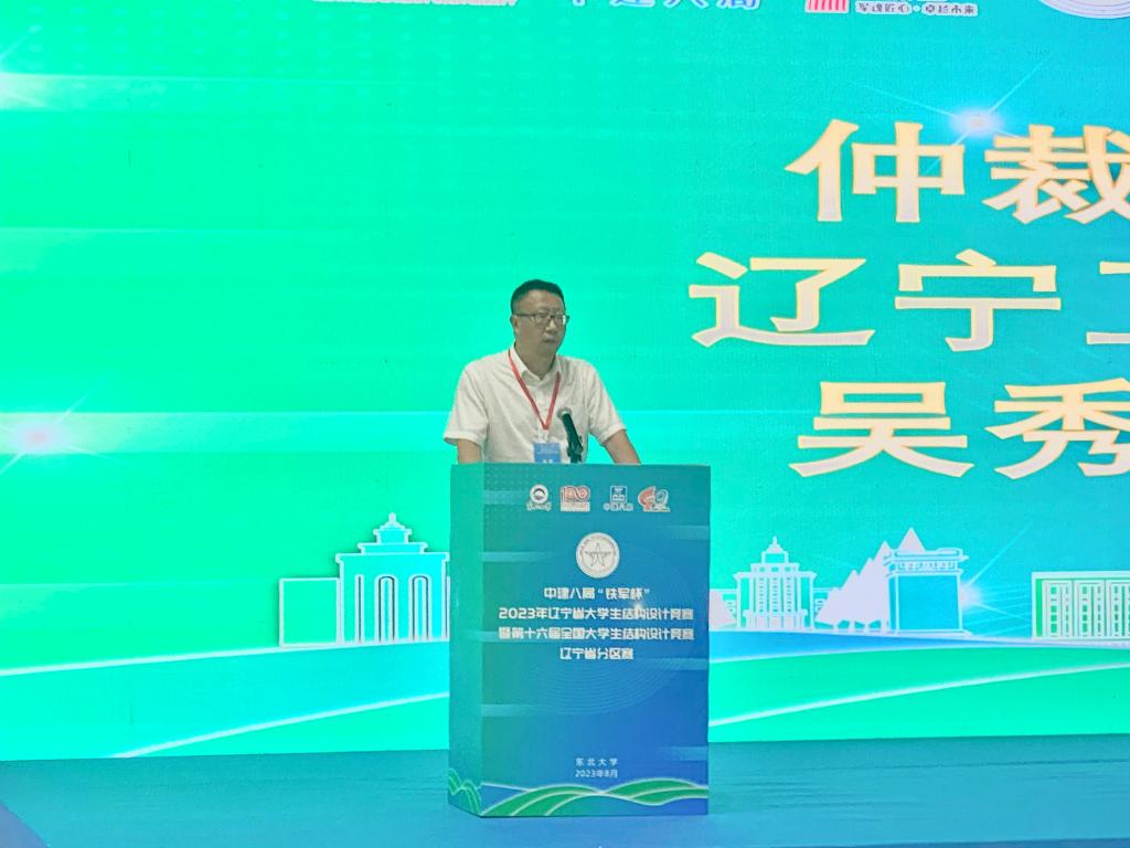我校土木工程学院院长唐巨鹏教授受邀担任专家委员会副组长,全程评议赛事的各项环节。土木工程学院吴秀峰副教授受邀担任竞赛仲裁委员会委员,并代表专家组在闭幕式上作竞赛点评。竞赛委员会宣布2024年辽宁省大学生结构设计竞赛由辽宁工程技术大学承办,唐巨鹏教授代表我校致辞,并向全省参赛高校发出邀请。