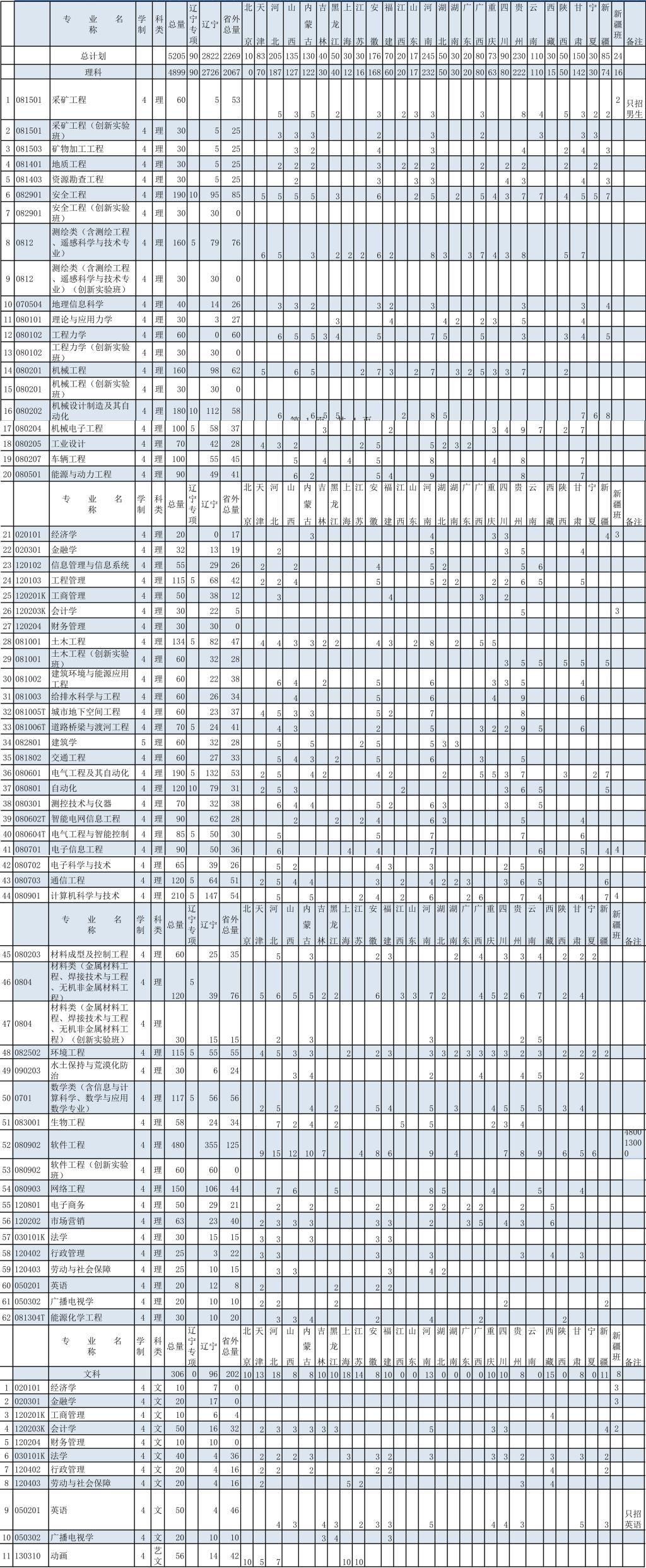 2019年辽宁工程技术大学本科分省分专业招生计划