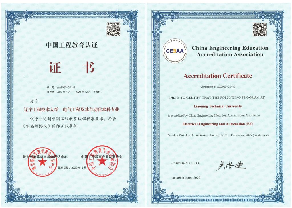 多年来,经历老一辈电气人的不懈努力,本专业于1981年获得我国首批硕士学位授予权,目前拥有电气工程博士学位一级授权点、能源动力硕士授权点。2012年被确定为辽宁省首批普通高等学校本科工程人才培养模式改革试点专业;2015年被确定为辽宁省首批应用型转变专业、辽宁省首批优势特色专业;2016年通过教育部工程教育专业认证;2017年被确定为辽宁省首批应用型示范专业;2019年通过国际工程教育专业认证复评;2019年获批辽宁省一流示范专业;2020年1月获批辽宁省高校大学生校外实践教育基地(辽宁工程技术大学-葫芦岛龙源采油配套设备有限公司实践教育中心);2021年1月获批国家级一流本科专业建设点。