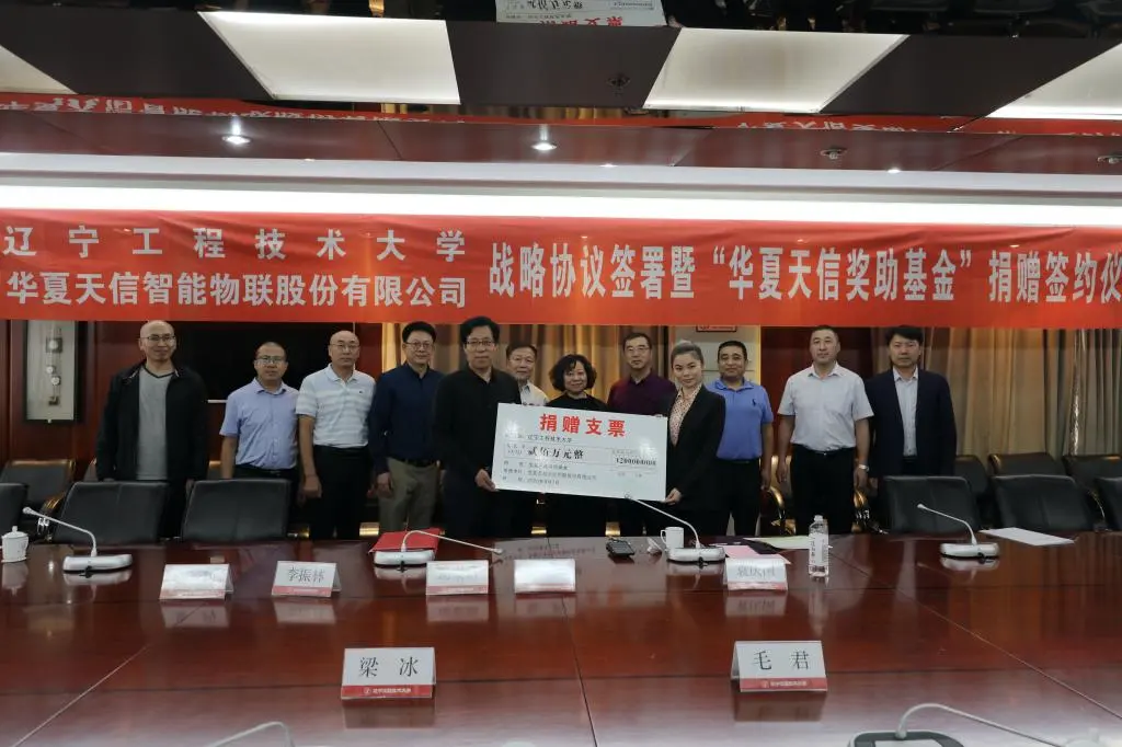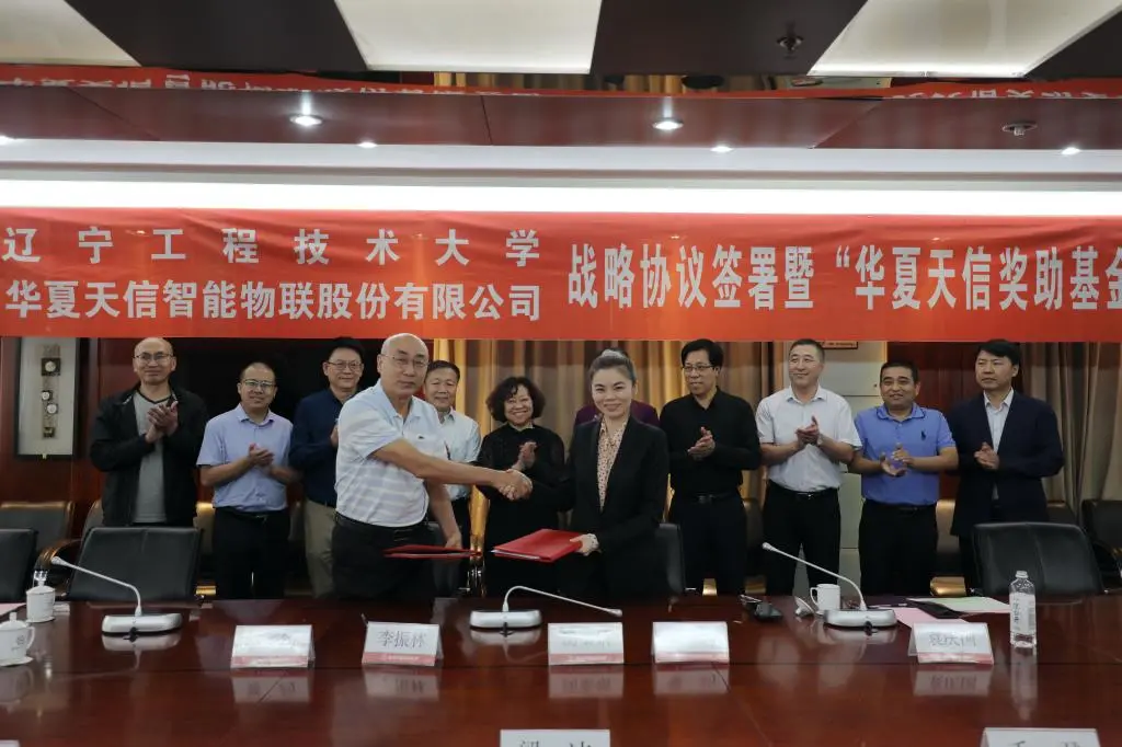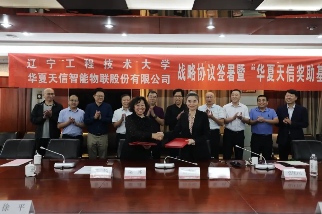 9月7日下午,我校与华夏天信智能物联股份有限公司签署战略协议,并举行“华夏天信奖助基金”捐赠签约仪式。华夏天信智能物联股份有限公司董事长汤秦婧,高级顾问袁庆国、刘江,校长梁冰,副校长毛君,校总会计师李振林,校党委委员徐平及相关单位负责人参加签约仪式。