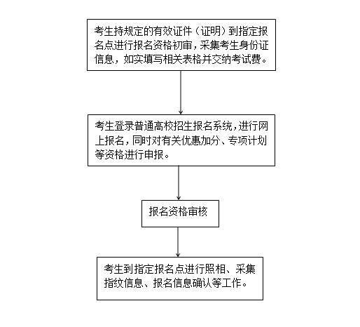 第三、四阶段:11月16日8时至11月25日17时(具体时间安排由各报名点确定并公布),考生应持规定的有效证件(证明)和相关材料到指定报名点进行报名资格审核并完成照片采集、指纹采集和信息确认等工作。所有考生均须按省教育考试院统一要求采集指纹信息。报名登记确认表必须由考生本人签字确认,不得由他人代替。未支付考试费的考生将不能进行报名信息确认。未进行信息确认的报名信息无效。报名结束后不再安排补报名。