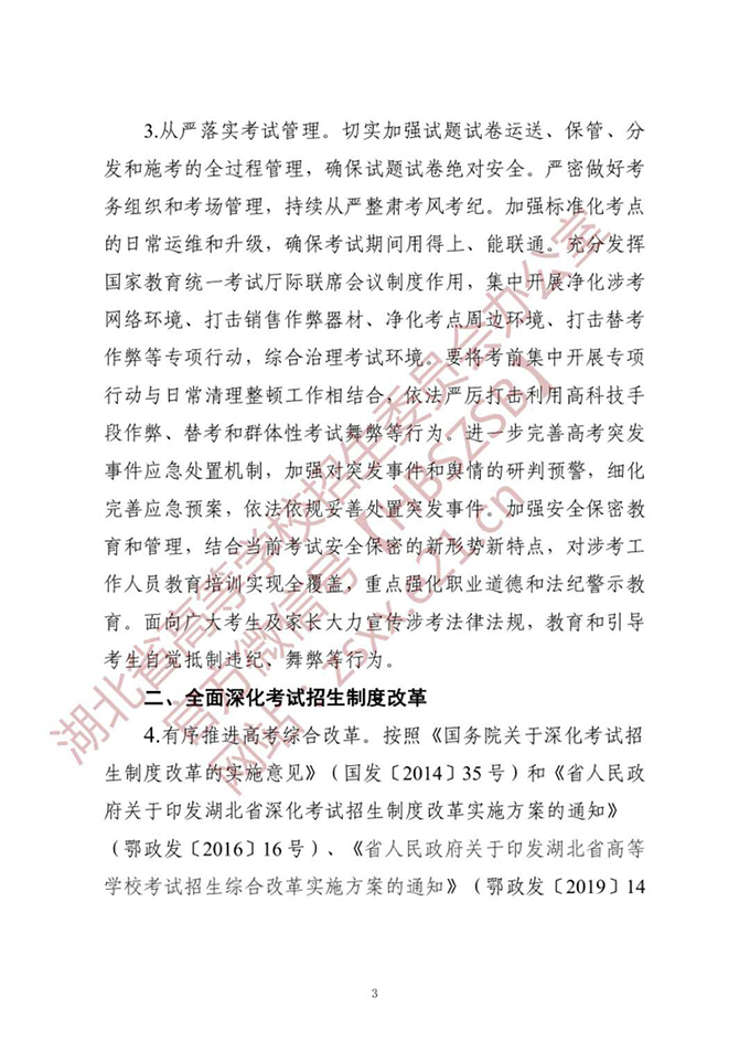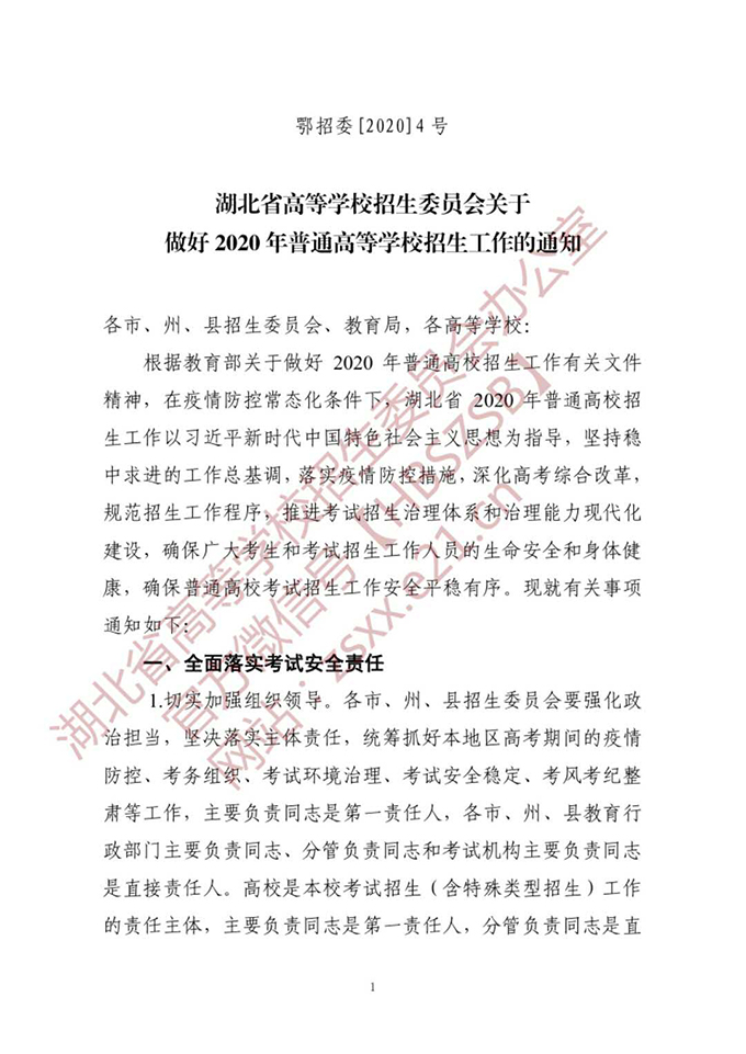 湖北省高等学校招生委员会关于做好2020年普通高等学校招生工作的通知